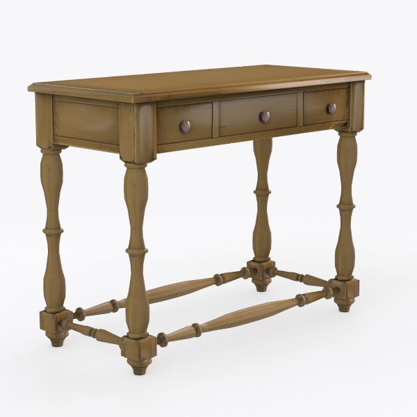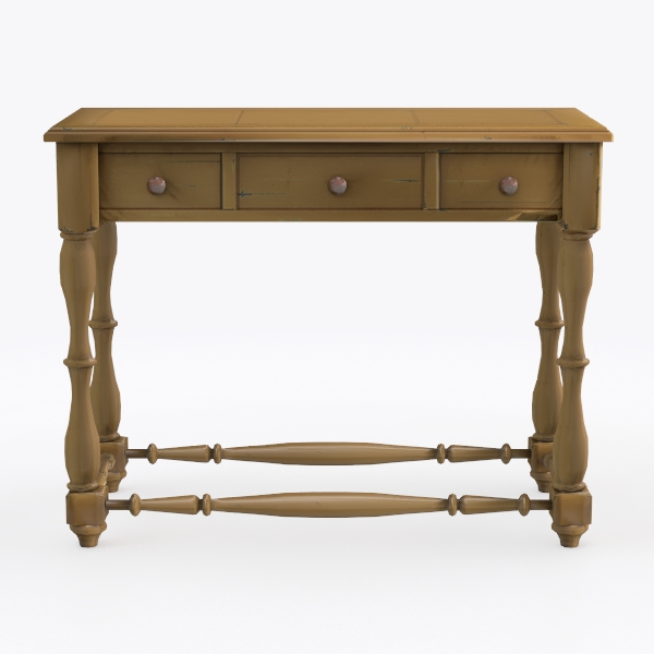 Inspired by classic rural craftsmanship, this wooden console table has a warm, matte finish with natural wood grain. Curved legs and turned drawer knobs add soft visual texture, balancing elegance and coziness. Ideal for a vintage entryway or living room, pairing with linen sofas and potted greenery. Three drawers offer hidden storage, while sturdy, curved legs ensure lasting stability.