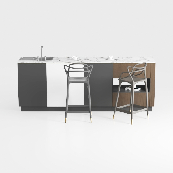 Inspired by the blend of nature’s elegance and modern simplicity, this kitchen island features a smooth marble countertop, warm wood accents, and delicate metal legs. Its clean lines and neutral palette create a sophisticated, clutter-free look, ideal for modern minimalist or contemporary luxury spaces. Spacious enough for meal prep, it offers hidden storage, while the bar-height design pairs seamlessly with sleek pendant lights for a cozy, refined dining experience.