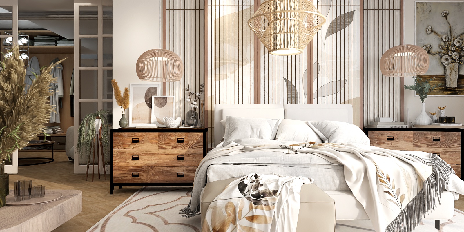 Inspired by natural materials and minimalist design, this wardrobe merges functionality with warm, earthy aesthetics. Its light wood texture brings tactile warmth, while soft linen/cotton robes add gentle coziness, creating a serene, clutter-free visual. Ideal for modern minimalist or Scandinavian bedrooms, pairing beautifully with wooden accents and neutral textiles. Spacious hanging rods, divided compartments, and hidden storage keep essentials organized, balancing style and practicality seamlessly.