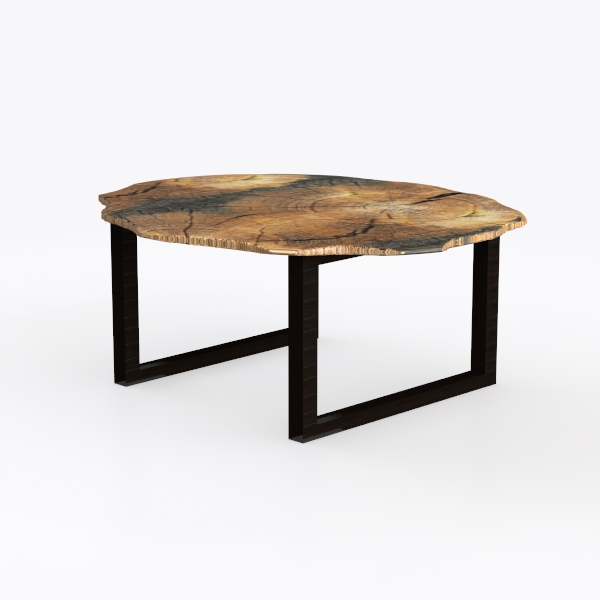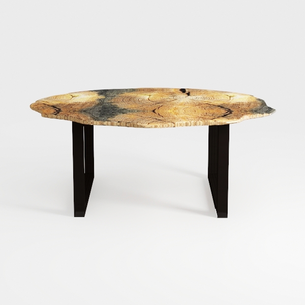 Inspired by natural wood grain and riverbed patterns, this table features a warm, earthy top with intricate textures—smooth to the touch, mimicking aged wood. Its soft, flowing silhouette blends rustic charm with modern simplicity, ideal for minimalist living rooms or cozy cabins, pairing beautifully with linen sofas and potted plants. Sturdy black metal legs support a spacious surface, perfect for daily use or entertaining.