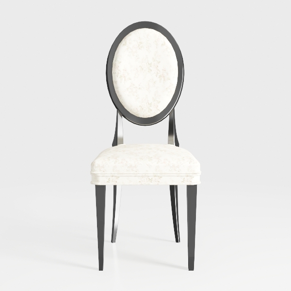 Inspired by mid-century charm, this chair blends soft oval backrests with delicate floral-patterned upholstery, offering a plush, tactile experience. The polished black metal frame and slender legs add a sleek, modern touch, balancing comfort and elegance. Perfect for dining rooms or living spaces, it pairs beautifully with wooden tables and marble accents, enhancing a modern-luxury aesthetic with its stable, cozy design.