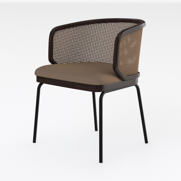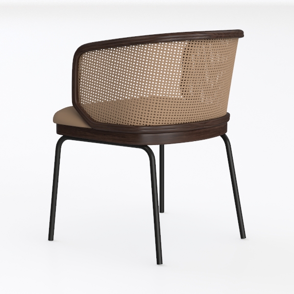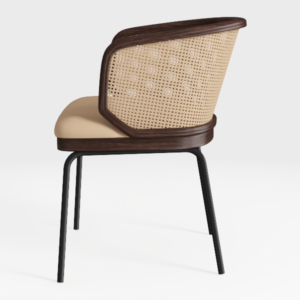 MCM Dining Chairs - 26" Swivel Living Room Chairs, Cane Back, High-Density Cushion, Walnut Bentwood Legs & Curved Arms, for Restaurant/Office/Home (Rattan Black, Set of 2)