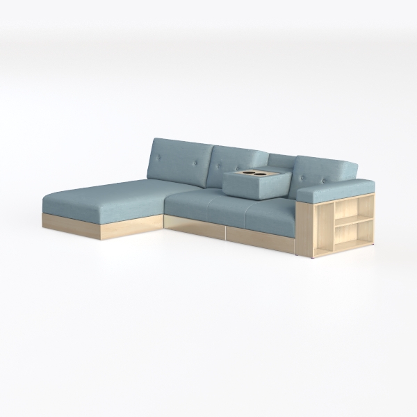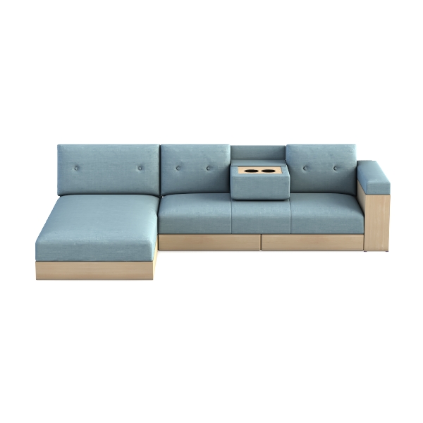 Beyond its looks, the sofa prioritizes comfort: generously deep seat cushions cradle you gently, while the firm yet yielding backrest supports your spine. A built-in console between the main seating and chaise includes two integrated cup holders, keeping drinks within easy reach during relaxed moments. The low-profile wooden base even leaves room for hidden storage below, blending practicality into the design flawlessly.