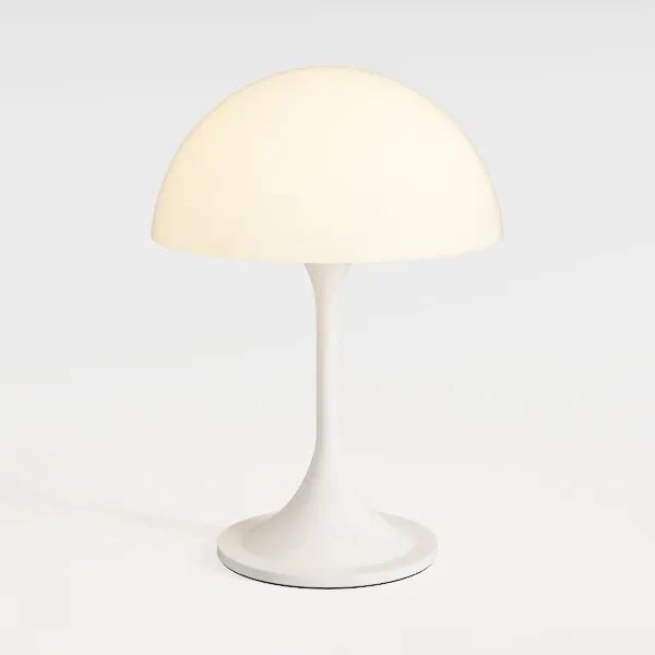 A 3D model of a Table Lamp, featuring a white domed shade, slender stem, and circular base, with a modern minimalist aesthetic. It has detailed geometry and is suitable for home lighting in bedrooms, studies, or living rooms.