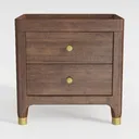Inspired by mid-century modern design, this nightstand blends warm wood grain with brushed brass knobs and legs, offering natural texture and subtle elegance. Ideal for a modern minimalist or Scandinavian bedroom, it pairs well with linen bedding and potted plants. Spacious drawers provide clutter-free storage, while brass feet lift it slightly, making cleaning underneath easy.