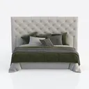 The design draws inspiration from a harmonious blend of classic craftsmanship and contemporary minimalism, reimagining timeless bed aesthetics with a focus on understated luxury. The headboard, upholstered in a soft, creamy-white material, features intricate tufted detailing that adds texture without overwhelming, inviting gentle touches. The bed is layered with plush green and gray checkered bedding, their muted tones creating a warm, earthy atmosphere, while the neutral base allows the soft textures to take center stage, enhancing the sense of calm.