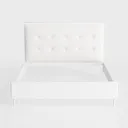 Inspired by timeless minimalism, blending clean lines with subtle classic details, this bed embodies serene, uncluttered spaces. Smooth, matte-white frame contrasts with soft, button-tufted upholstered headboard, offering crisp modernity and gentle tactile comfort. Ideal for modern, Scandinavian, or minimalist bedrooms, pairing with sleek wooden nightstands, potted greenery, and warm ambient lighting. Sturdy frame ensures stability; low-profile design maximizes floor space, creating an airy, cozy retreat.